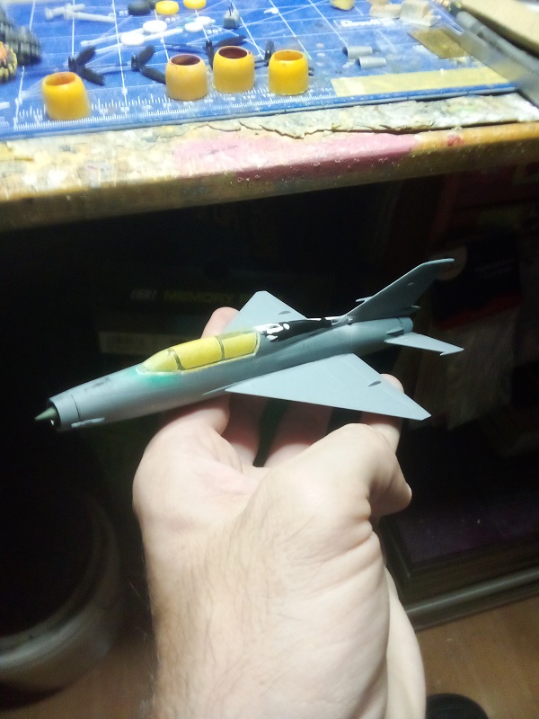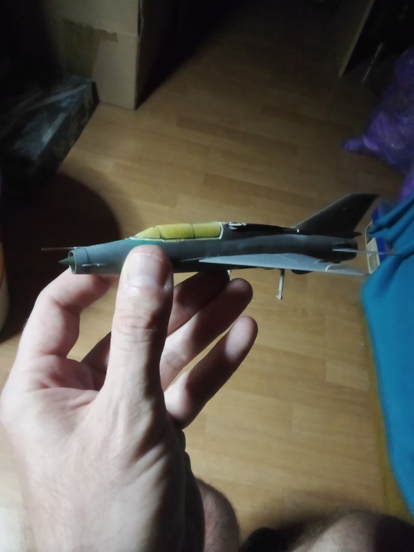 Ko sem na koncu prilepil še kolesa, oborožitev in vse lopute pri podvozju, sem odstranil še maske in Mig-21UM (early) je bil končan.