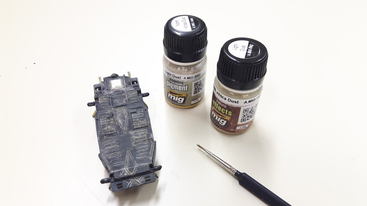 Prav tako sem uporabil pigment in weathering efekt na pobarvani in polakirani zgornji površini.