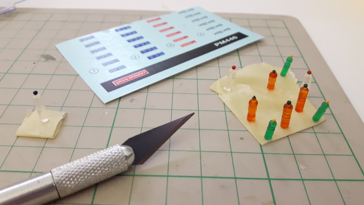 Elemente v samogradnji sem s sekundnim lepilom in s pomočjo pincete prilepil na maketo. Na sliki vidite kremo za sončenje na sedežu.