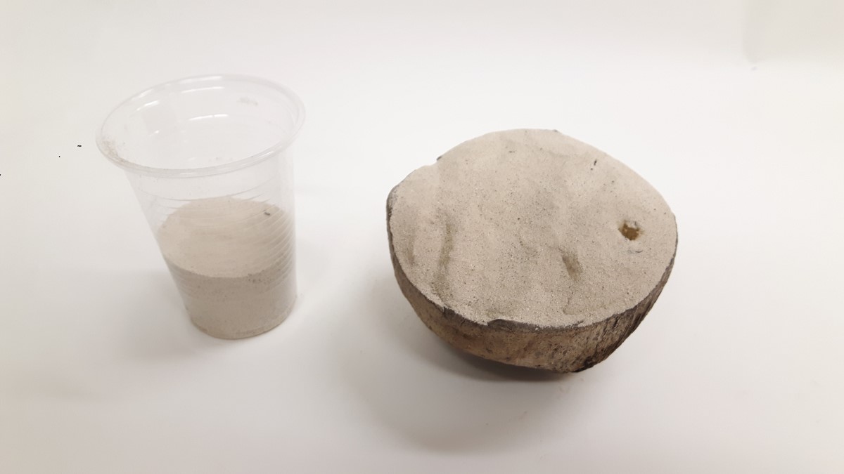 Ko se je masa posušila sem površino premazal z lepilom za les in ga posul z drobnim puščavskim peskom.