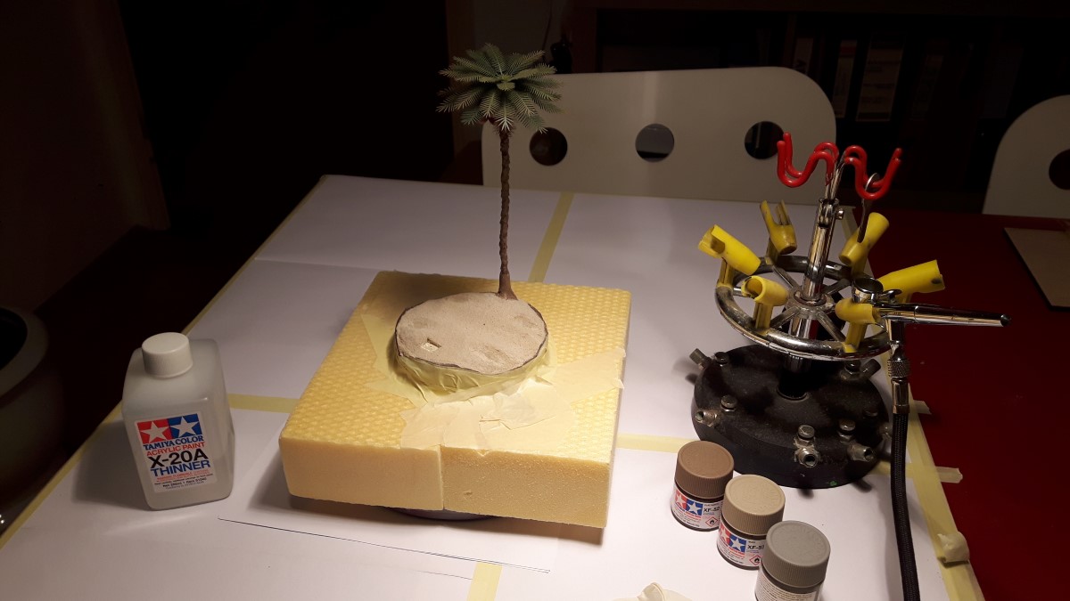 Nato sem na hitro (brez uporabe lepila) sestavil maketo, dodal palmo in vse skupaj preizkusil na podlagi.