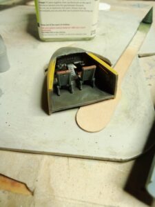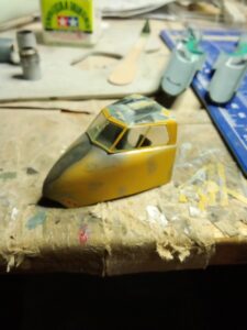 Na nos sem prilepil še opazovalno kupo od Revell-ovega Lancastra (1:72), prilepil močno predelano podvozje Italerijevega Su-34 in pričel z maskiranjem prozornih površin.