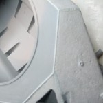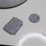 Celoten zvar na zgornjem delu trupa sem predelal tako da sem zelo tanko nitko plastike zalepil v reže, z lepilom enakomerno premazal in nato z hrbtno stranjo skalpela zarezal vzorec zvara.