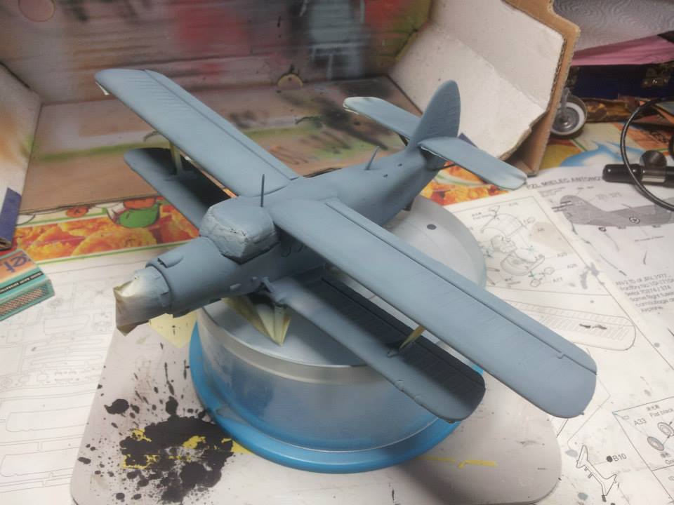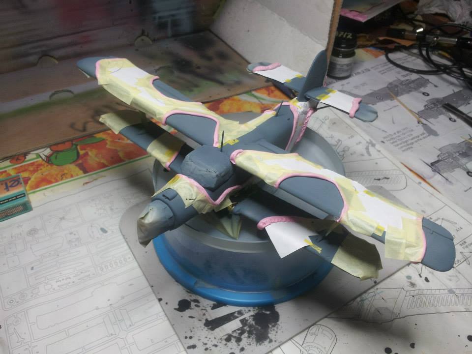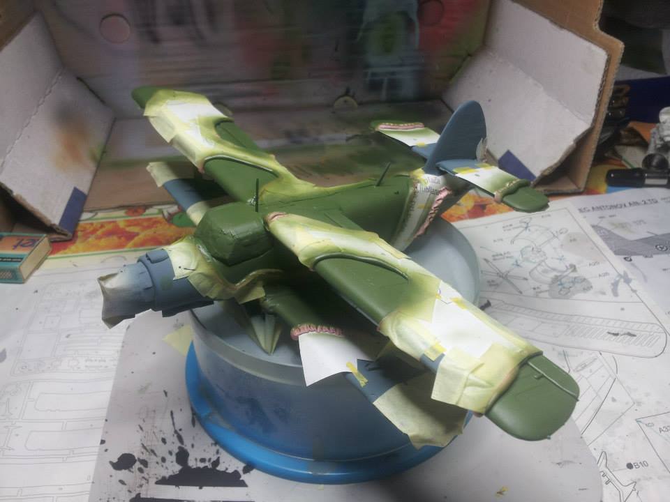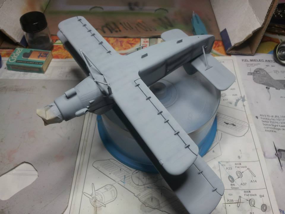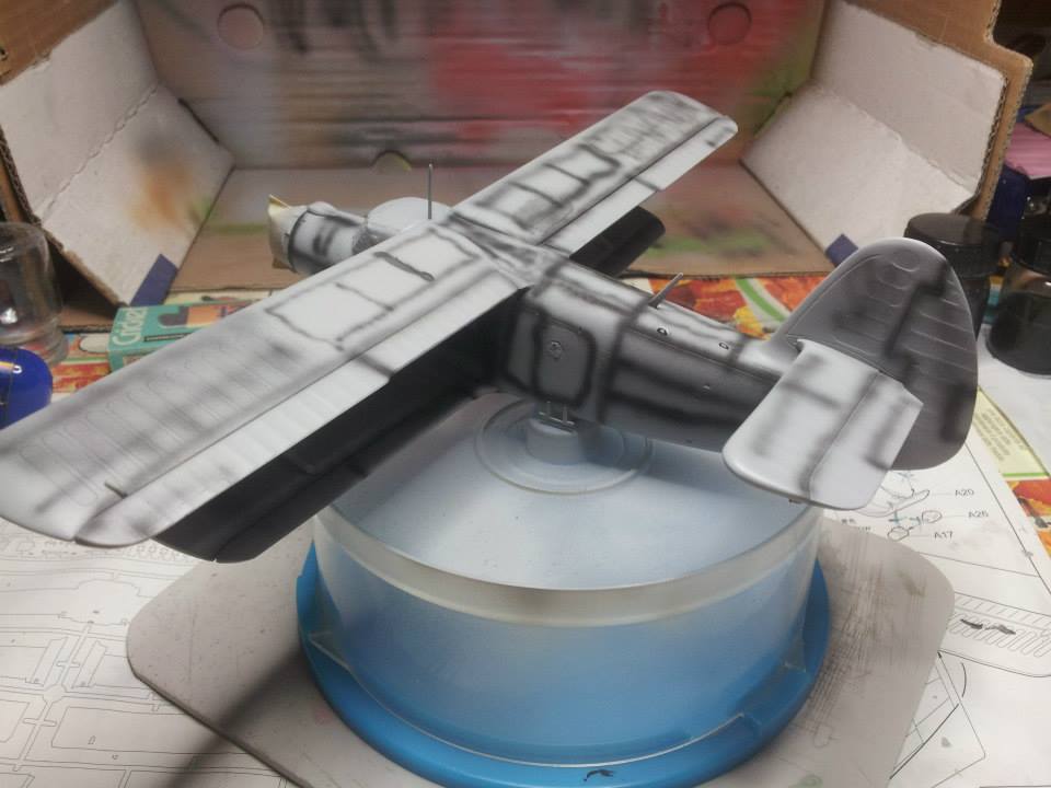 Ko sem imel večino letala sestavljenega in pomaskiranega, sem ga pripravil za nanos temeljne barve.