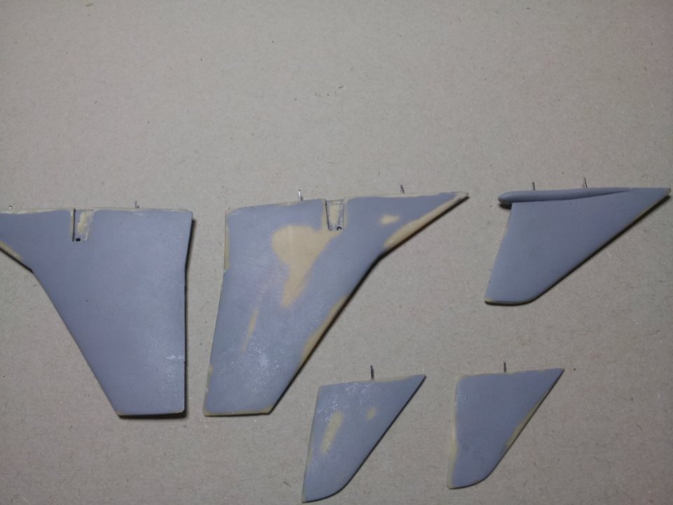 Da sem vse krmilne površine lahko pravilno prilepil na svoje mesto in, ker uporaba sekundnega lepila ne dovoljuje časa za pravilno pozicioniranje, sem vsem naredil vodila, da jih lahko takoj pravilno prilepim na svoje mesto.