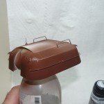 Barvanje makete je faza, ki lahko bistveno pripomore h končnemu izgledu izdelka. Preden začnemo barvati maketo, poskusimo brizgniti barvo na kakšen kos stirena ali neuporabljen del makete, da vidimo, ali je prav redčena ter nastavimo potreben pritisk na kompresorju. Na plast temeljne barve sem najprej nanesel barvo rje, ki je bila potrebna za kasnejšo fazo staranja. Ko je barva enkrat suha, običajno v nekaj urah, v tem primeru pa si lahko pomagamo s sušilcem za lase, kar čas skrajša na nekaj minut. Nato na maketo nanesemo več lahkih slojev AMMO MIG Chipping fluid, katerega pa ne smemo sušiti drugače, kot po naravni poti, ali pa le nekoliko popihati z zračnim čopićčem. Nikakor ne smemo segrevati. Nato nanesemo kočno barvo. Sušimo jo nekaj ur in medtem lahko zaščitimo pred prahom, tako da jo pokrijemo s kakšno posodo ali škatlo. Na vrsti je postopek ponazarjanja okrušene barve. S čopičem na mestih, kjer želimo tak efekt, nanesemo mlačno vodo. Čez nekaj trenutkov barva začne odstopati, zato je potrebno nekaj previdnosti in začeti z malo manj vode. Intenzivnost poškodb uravnavamo s čopičem, in z vatiranimi palčkami, s katerimi poberemo odvečno vodo. Po tem postopku nanesemo na maketo svetleč lak, za kar sem jaz uporabil Emsal Glanzer, kateri je pri nas dostopen v vseh marketih in zagotavlja res gladko površino. Ta je predvsem pomembna za namestitev nalepk, pa tudi za staranje z olji.