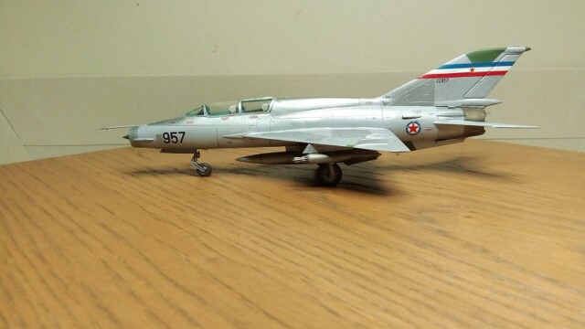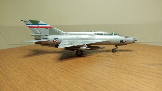 Osma verzija Miga-21 v moji zbirki jugoslovanskega letalstva je Mig-21UM (early). Za izdelavo sem uporabil sicer solidno maketo proizvajalca R.V. Aircraft, ki pa ima sicer še vedno ogromno pomanjkljivosti, zato je bilo potrebno pri izdelavi poseči po ogromno dograditvah in se večkrat lotiti samogradnje. Od dograditev sem uporabil odlični resinski motor firme Amigo models, Pavlin kokpit v Bilekovem pakiranju, Reskit kolesa, Master pitot cev, Extratech fotojedkane dele, Eduardovo oborožitev in nalepke firm LiftHere, Begemot in Balkan models. S končnim izdelkom sem zadovoljen, glede na vse nepravilnosti, ki jih maketa ima in na vse težave in potrebne predelave in dodelave med gradnjo.